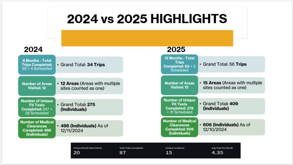 Sybest LLC has successfully delivered statewide occupational health compliance services, supporting the agency’s multiple facilities through onsite respiratory fit testing and medical clearance coordination. Our program demonstrates consistent growth, expanded geographic coverage, and measurable impact on workforce readiness and regulatory compliance.